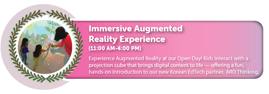 Experience Augmented Reality at our Open Day! Kids interact with a projection cube that brings digital content to life — offering a fun, hands-on introduction to our new Korean EdTech partner, Aro Thinking.